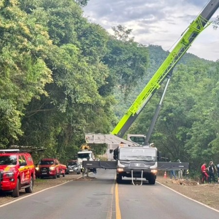 Colisão entre caminhão e camionete na ponte do Goio-Ên joga veículo no rio Uruguai