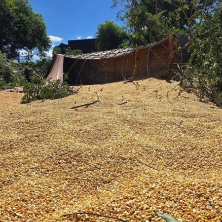 Caminhão carregado com milho tomba na BR-285 após motorista sofrer mal súbito