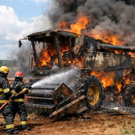 Incêndio atinge colheitadeira na tarde de sábado, no interior de Sede Nova
