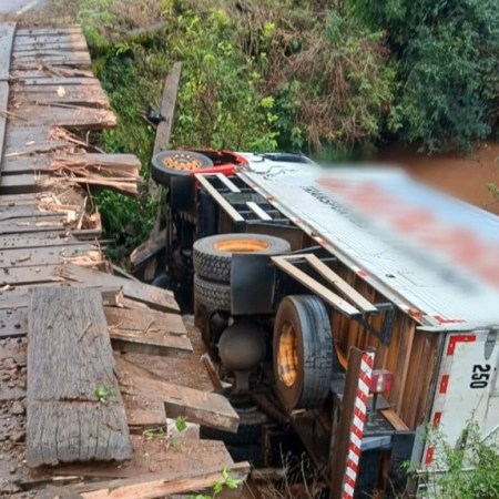 Caminhão frigorífico cai de ponte e motorista está desaparecido na ERS-241, no RS