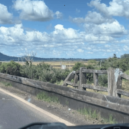 Na manhã desta sexta-feira (24), um caminhão modelo Constellation, de uma transportadora, saiu da pista e caiu da pon...