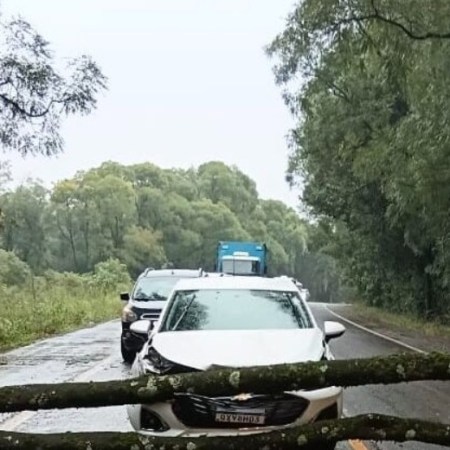 Nesta terça-feira, 7, um automóvel de cor branca colidiu com uma árvore que havia caído sobre a pista da ERS-155, n...