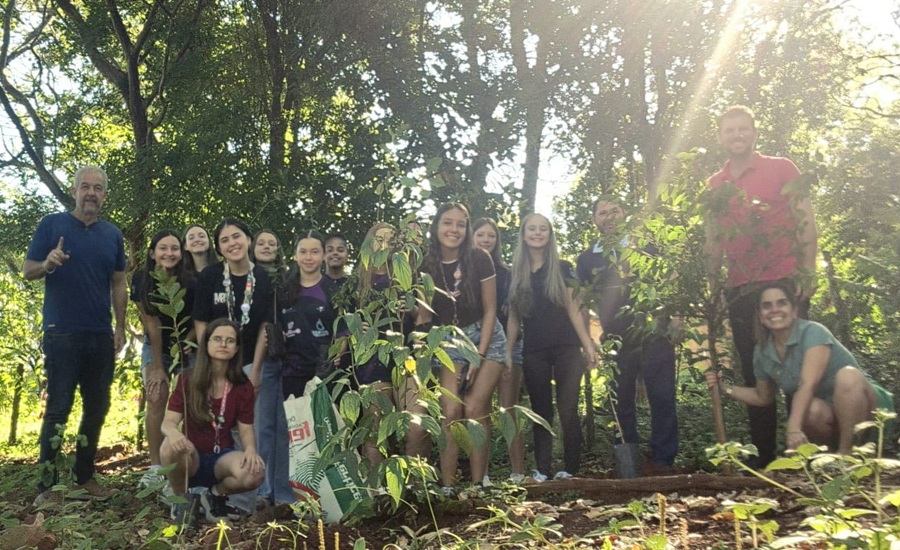 Jovens interactianos, ao lado do rotariano Jean Carlo Manhabosco e da representante da Casa da Amizade, Luciana Rolim, realizaram o plantio de mais de 18 mudas de árvores, contribuindo para a recuperação de áreas verdes e para a conscientização ambiental da comunidade.