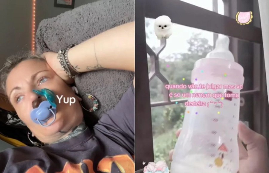 Adultos usando chupetas, mamadeiras ou outros objetos típicos da infância têm aparecido com frequência em vídeos no TikTok. A prática está associada ao chamado age regression (regressão de idade, em português) — comportamento em que a pessoa retoma hábitos de fases anteriores da vida para se sentir segura, aliviar o estresse ou reduzir a ansiedade.