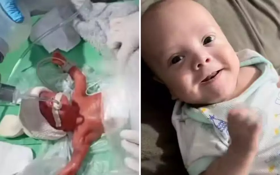 Com apenas cinco meses de gestação, Heusileia precisou ser hospitalizada, e o pequeno Henrique veio ao mundo muito antes do previsto. Durante semanas, permaneceu entubado, lutando pela vida a cada dia. A família acompanhou de perto cada etapa de evolução, registrando desde os primeiros cuidados médicos até momentos simbólicos, como o primeiro banho de bacia.
