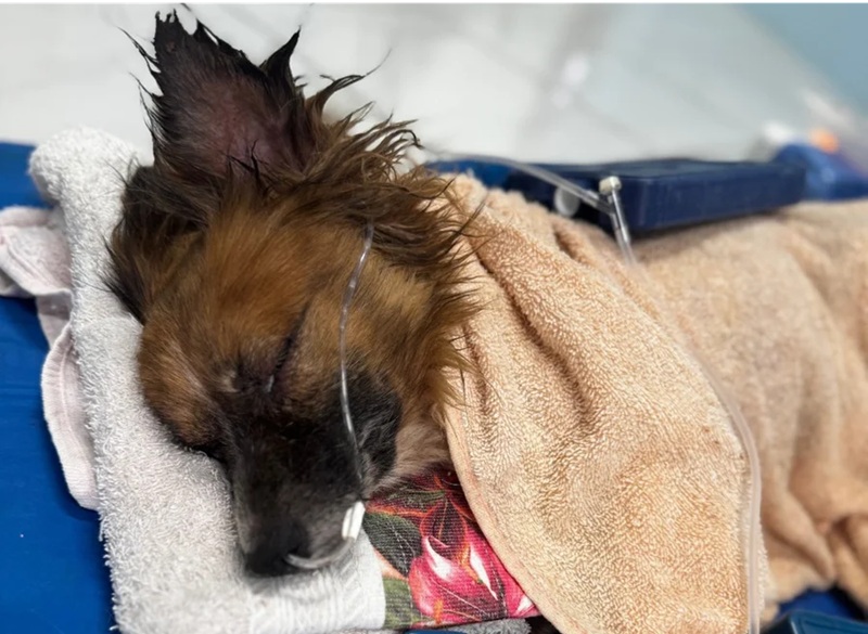 No registro feito na Delegacia de Polícia da cidade, como crime de maus-tratos, aponta que o animal está com cinomose em estado avançado, cheio de pulgas, carrapatos, apresentando um quadro de febre alta e desidratação. A polícia apura a identidade do autor da crueldade.