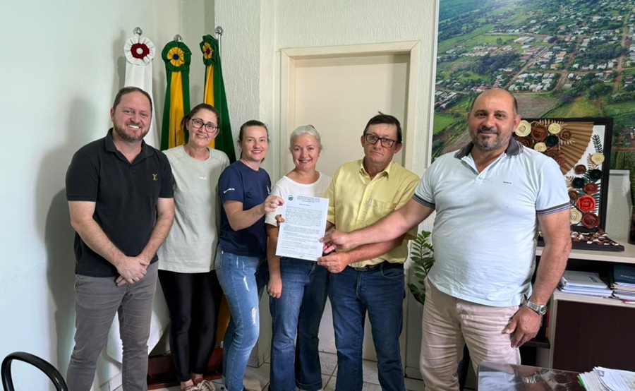 Na tarde de segunda-feira, 03 de novembro, aconteceu no gabinete do prefeito Elton Pilger uma reunião com a presença do vice-prefeito Sidinei Bilhão, da presidente e do vice do Sindicato dos Trabalhadores da Agricultura Familiar, Leila Hermes e Jair Mayer, da extensionista da Emater, Carina Beuren, e da terapeuta Cleonice Fank.