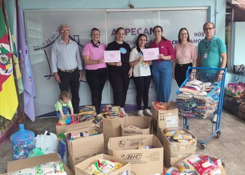 As representantes visitaram a AAPECAN – Associação de Apoio a Pessoas com Câncer, que recebeu 480 kg de alimentos não perecíveis e 10% dos lucros do evento, totalizando R$ 1.615,00.