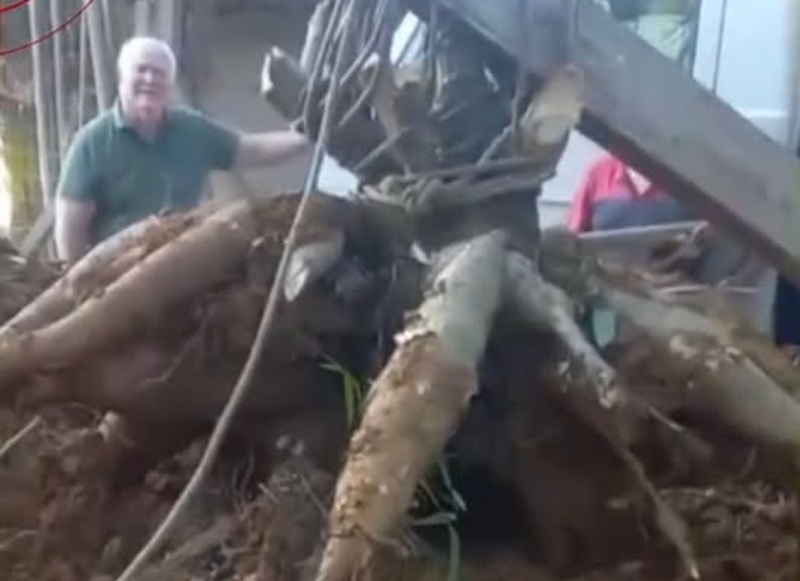 A colheita ocorreu na última quarta-feira, dia 15. Ao perceber que não se tratava de algo comum, foi necessário reunir quatro pessoas e utilizar equipamentos improvisados, como pedaços de madeira e corda, para retirar o alimento da terra. O processo durou cerca de uma hora.