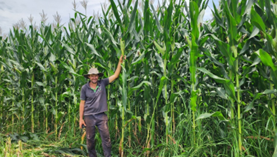 Uma plantação de milho do interior de Crissiumal tem chamado a atenção pelo tamanho das plantas.