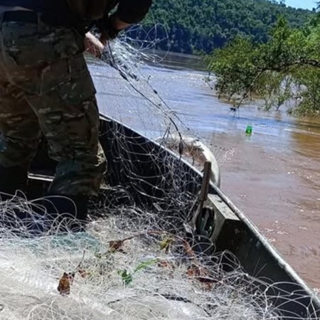 Mais de 1000 metros de redes de pesca ilegal são apreendidos no rio Uruguai, em Derrubadas