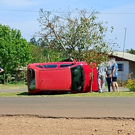Veículo tomba após colisão em Três Passos, na RSC-472, saída para Tenente Portela