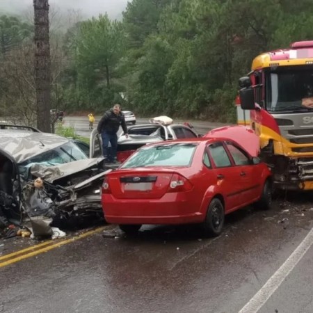 Homem morre após acidente entre dois carros e caminhão na BR-116, no RS