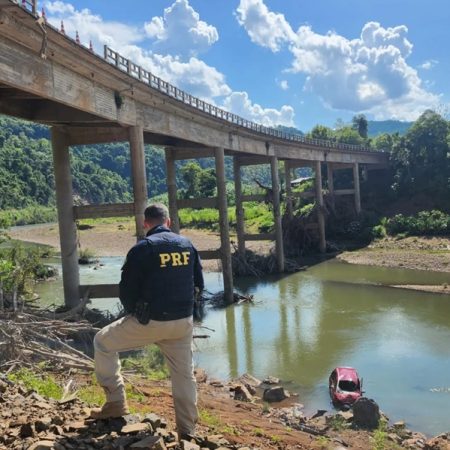 Homem fica gravemente ferido após carro cair de ponte na BR-386, no RS