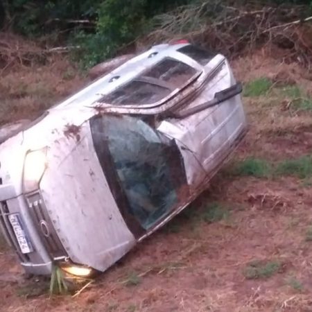 Acidente deixa dois feridos após veículo capotar fora da pista na BR-468, em Três Passos