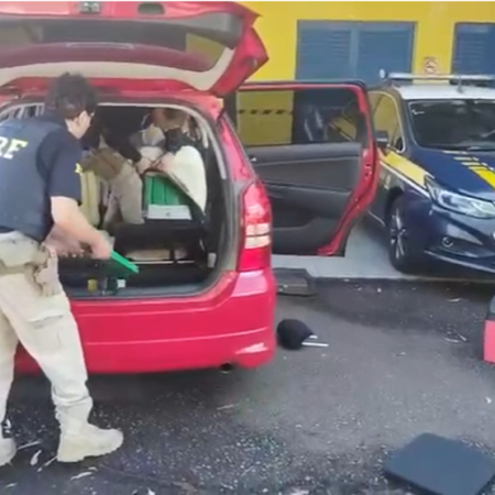 Dois paraguaios são presos na BR-480 com quase 100 kg de maconha escondida em veículo
