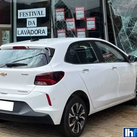 Acidente inusitado: carro invade fachada de loja após condutora se confundir ao estacionar