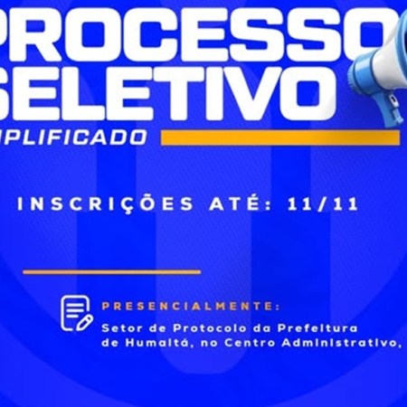 A Administração Municipal de Humaitá anuncia a abertura das inscrições para o Processo Seletivo Simplificado, que ...