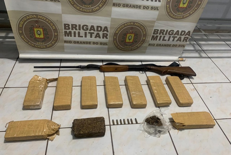 Durante a ação, foram apreendidos 10 tijolos de maconha, mais uma porção de maconha, (totalizando 6,100kg), uma espingarda boito calibre .40 com numeração suprimida e sete munições Calibre .32, além de um veículo Gol.