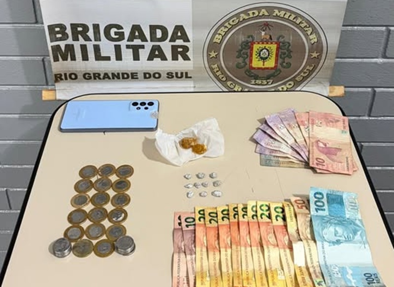Durante a ação foram apreenchidas duas porções de crack (7,9g) e 10 por porções fracionadas (1,6g), além de um smartphone e uma quantia em dinheiro.