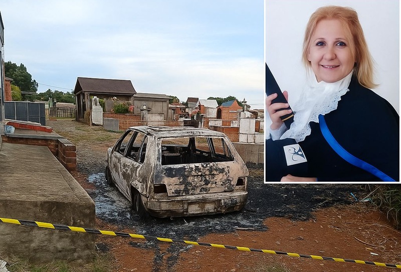 No local, os policiais encontraram um veículo Fiat Uno totalmente queimado. Dentro do automóvel estava o corpo de uma mulher, ainda não identificado inicialmente, completamente carbonizado.