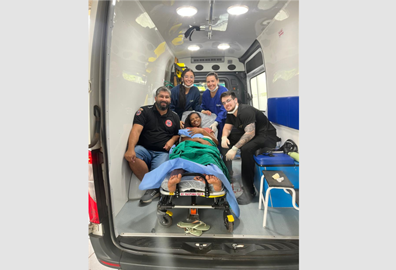 A equipe do hospital estava em deslocamento para Santa Maria quando o parto acabou acontecendo ainda durante o trajeto. Participaram do atendimento a enfermeira Suelen, o médico Dr. João Vitor, a técnica de enfermagem Andreia e o condutor da ambulância, Felipe.
