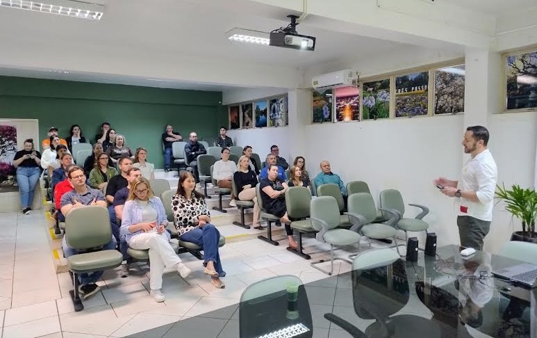 Na quinta-feira (18), os servidores públicos municipais participaram da palestra “Vidas Importam”, ministrada pelo psicólogo do CRAS, Guilherme C. Ullmann, especialista em saúde mental, Psicologia Positiva e Terapia Cognitivo-Comportamental, além de mestrando em Psicologia Clínica e da Saúde. O evento, realizado no Auditório da Prefeitura em dois turnos, abordou a importância do bem-estar, da valorização da vida e da busca por ajuda quando necessário.