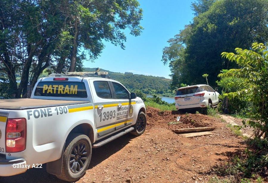 De imediato, uma equipe deslocou até a região e os pontos indicados, onde localizou a caminhonete. No momento da abordagem, o condutor perdeu o controle do veículo, colidiu contra a vegetação e fugiu do local a pé, adentrando a área de mata com acesso ao rio Uruguai, não sendo localizado.