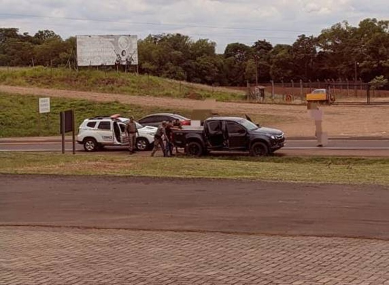 A ação ocorreu nas proximidades do trevo de acesso à cidade, após a equipe policial identificar o veículo em atitude suspeita. Durante a abordagem, foi constatado que a caminhonete possuía ocorrência de furto/roubo.