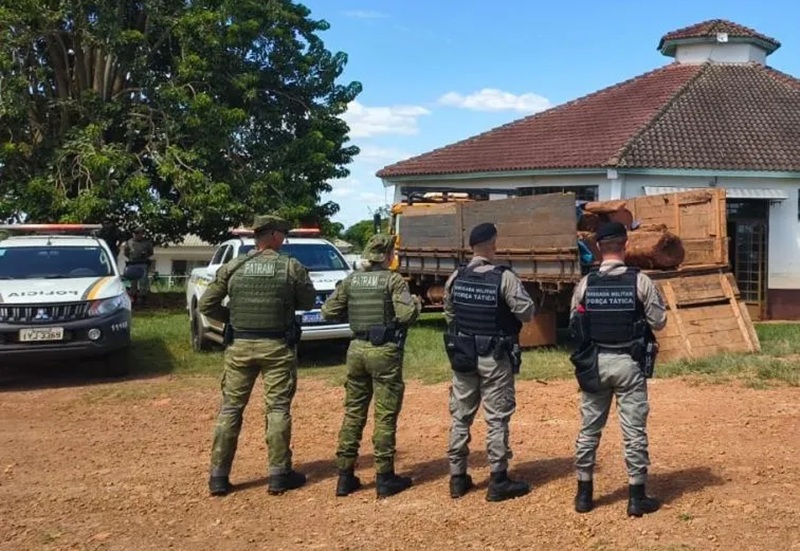 Durante a ação, dois indivíduos foram presos e houve a apreensão de um trator, um caminhão e da madeira extraída, sendo adotadas as medidas legais cabíveis.