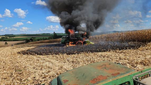 Quando os bombeiros chegaram ao local, o fogo já havia tomado completamente o maquinário, que estava sendo utilizado na colheita do milho. Apesar da rápida atuação da equipe, a colheitadeira sofreu perda total.