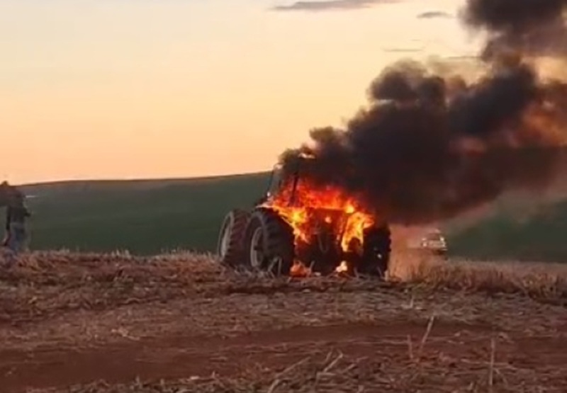 Um trator foi destruído por um incêndio na tarde de domingo (25/01) no interior de Sede Nova.