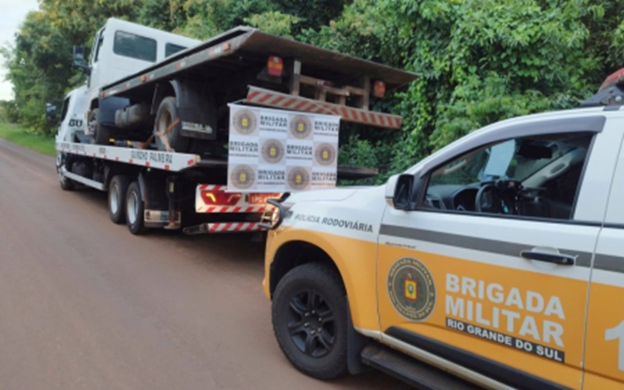 Na tarde de domingo (11/01), policiais militares do 1º Batalhão de Polícia Rodoviária da Brigada Militar (1º BPRv), por meio do Pelotão Rodoviário de Santo Augusto, durante fiscalização de trânsito na RSC-472, Km 69, no município de Três Passos, abordaram um caminhão-guincho do município de Palmeira das Missões, que realizava a remoção de um caminhão Ford/cargo com destino à cidade de Tiradentes do Sul.