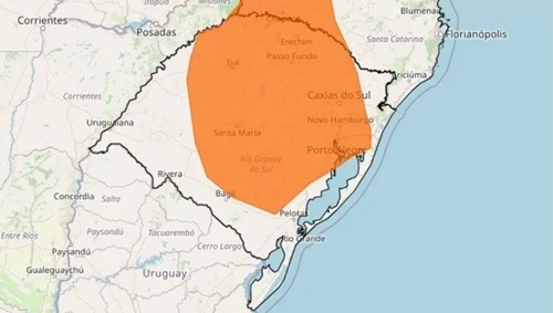 Há potencial para temporal em pontos do Oeste, das Missões, do Noroeste, do Centro e do Norte até, pelo menos, o fim da manhã. Os acumulados podem atingir 100 milímetros. Além disso, são esperadas rajadas de vento intensas e eventual queda de granizo.
