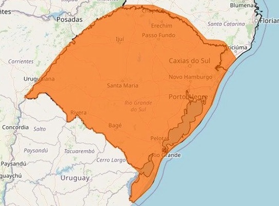 O Instituto Nacional de Meteorologia (Inmet) emitiu três alertas que indicam perigo de tempestade no Rio Grande do Sul. O mais severo, com classificação laranja, abrange todo o Estado e entra em vigor à meia-noite de sexta-feira (16).