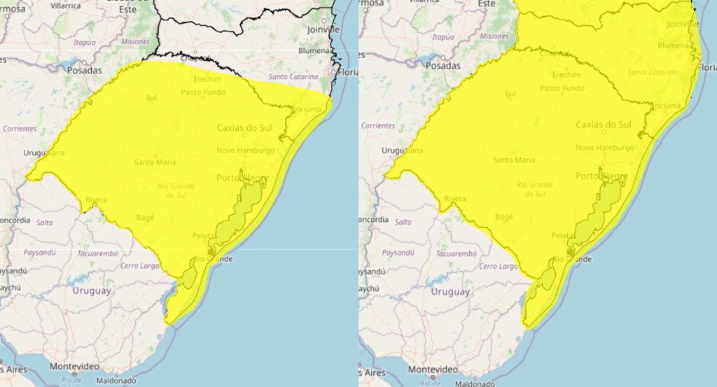 Segundo a Defesa Civil, há possibilidade de mudança climática no território gaúcho já no fim desta sexta. O órgão de proteção estadual emitiu três alertas para temporais acompanhados de chuva, vento forte e queda de granizo. Os avisos são válidos para a região metropolitana de Porto Alegre, nas proximidades de Charqueadas, também para as proximidades de Barão do Triunfo e a Costa Doce, no entorno de Dom Feliciano.