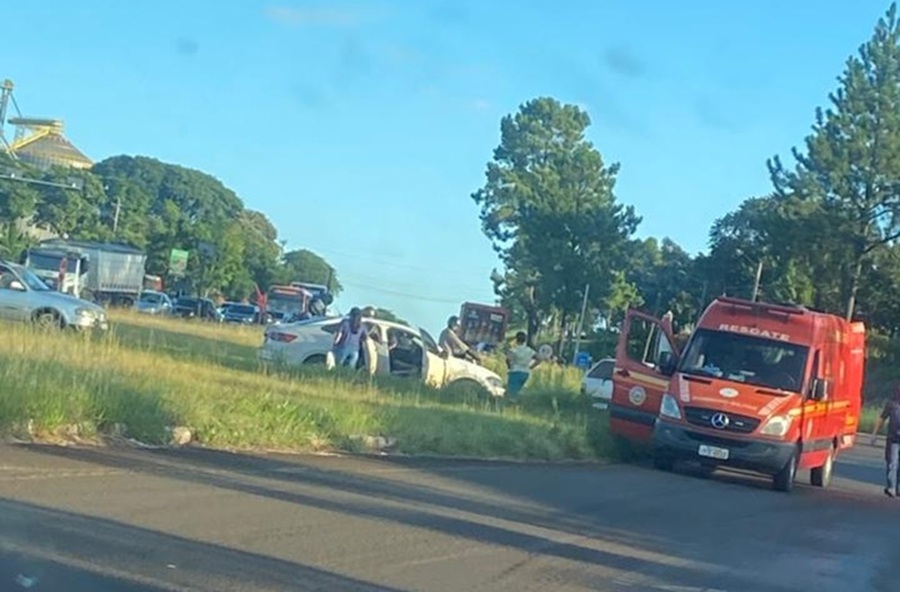 Conforme informações, a colisão envolveu um carro de passeio e uma motocicleta no trevo da saída para Padre Gonzales, pela Avenida Costa e Silva.
