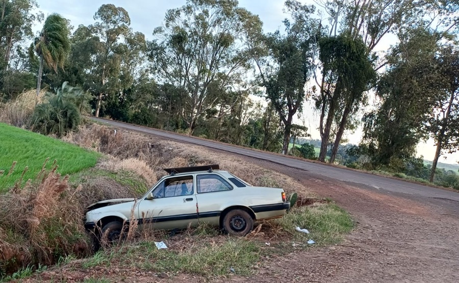 Conforme informações, um GM Chevette caiu em uma vala, em Esquina Liebelt, no acesso à estrada da localidade de Romana Seca, deixando um casal de idosos com lesões leves. As vítimas foram encaminhadas pelo Samu ao Hospital de Caridade.