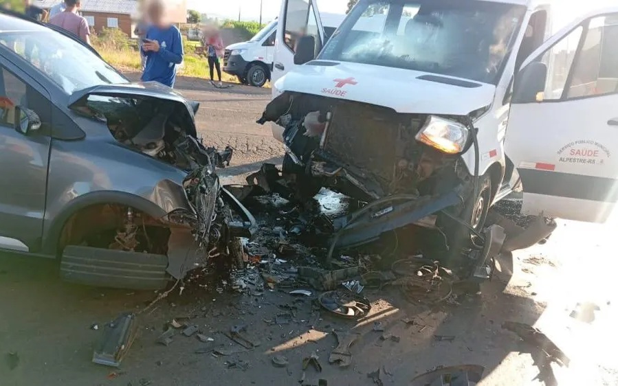 Um acidente de trânsito foi registrado nas primeiras horas da manhã desta segunda-feira, 2 de março, na rodovia RS-472, no município de Palmitinho. A colisão envolveu um Volkswagen Fox, com placas de Palmitinho, e uma van pertencente à Secretaria Municipal de Saúde de Alpestre. O impacto frontal entre os dois veículos resultou em danos significativos nas estruturas dianteiras, mobilizando equipes de segurança.