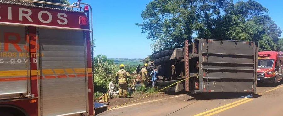 Um gravíssimo acidente de trânsito foi registrado na manhã deste domingo (04) na RS-210, na localidade de Santa Lúcia, no município de São Martinho, RS. A colisão envolveu uma carreta, uma caminhonete Volkswagen Amarok e um terceiro automóvel.