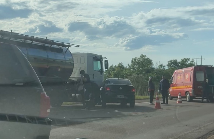 Conforme informações, um caminhão tanque colidiu na lateral de um carro de passeio em frente ao Desmanche em Esquina Liebelt, distrito de Bela Vista. A condutora do carro, de 33 anos, foi socorrida pelo Corpo de Bombeiros e encaminhada com uma lesão na testa e em estado de choque ao Hospital de Caridade. O motorista do caminhão não se feriu.