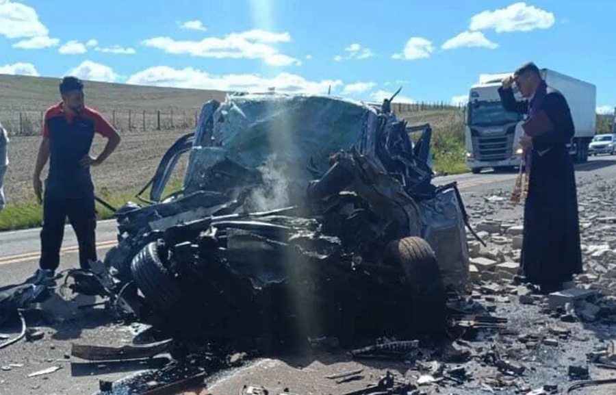 Uma cena chamou a atenção de quem passava pela BR-386, em Carazinho, na tarde de segunda-feira (13). Em meio a um acidente com duas vítimas, envolvendo uma picape e um caminhão, um padre se aproximou dos destroços e fez uma oração silenciosa no meio da rodovia.
