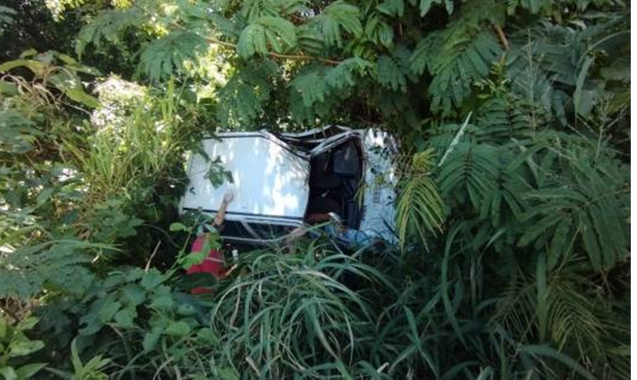 O veículo, um Fiat Uno com placas de Nova Candelária, saiu da pista e acabou ficando pendurado em árvores na lateral da rodovia, o que evitou que descesse um barranco com mais de 10 metros de altura.